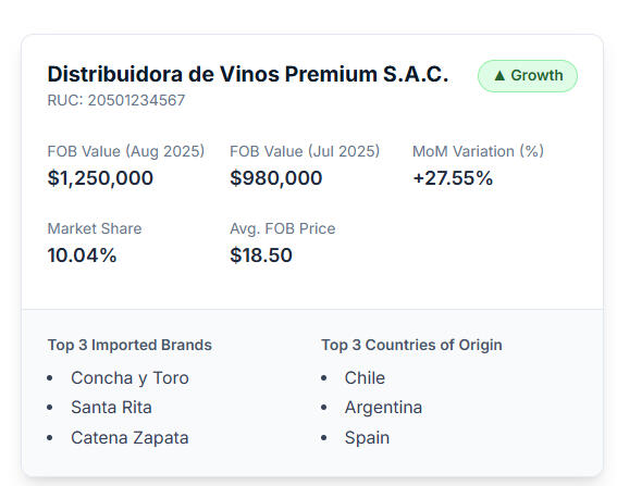 Lack of Clarity: You have no real data on which importers are growing, which are declining, or what brands your real competitors are selling in Peru.